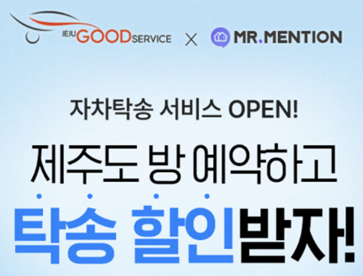 저희처럼 차량을 배를 통해 가져갈 수도 있지만, 차량을 탁송으로 제주도로 보내 놓고 비행기로 입도하시는 분들도 많습니다. 그럴 경우에는 미스터멘션에서 숙소예약 시 탁송비용에 대해 할인해 주는 이벤트도 하고 있습니다.