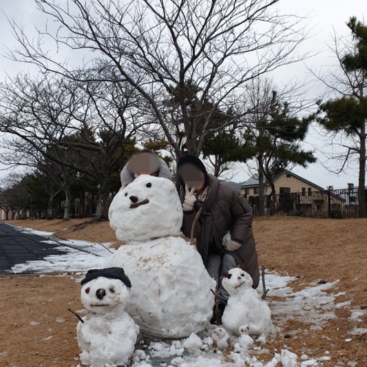 이제는 아이들도 쉽게 눈사람을 만들어 갑니다. 귀여운 새끼 눈사람까지 만들고 기념샷을 찍었습니다. 그래도 아이들이 좋아하니 그걸로 충분합니다.