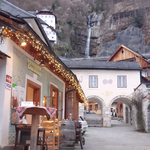 할슈타트 거리에서 떨어지는 폭포소리가 너무 예뻐서 한 컷 찍었습니다.