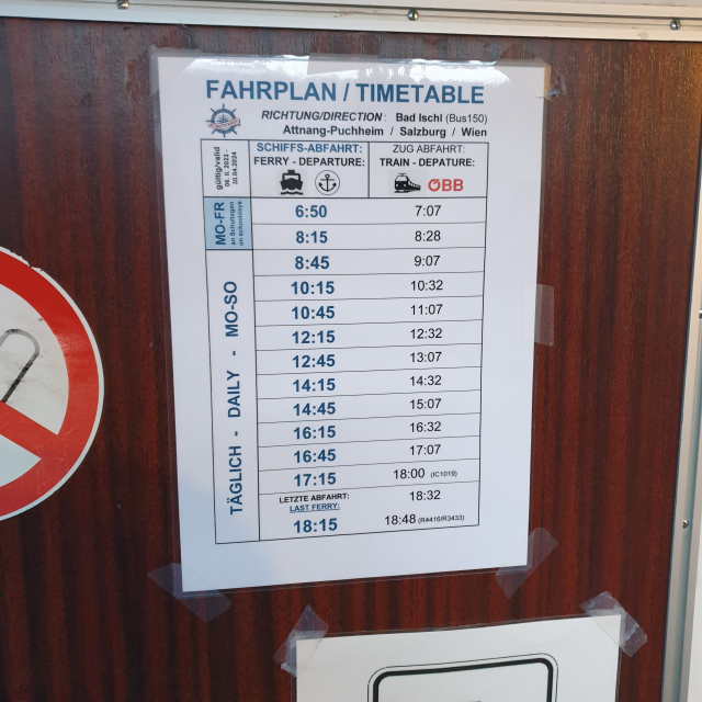 위 사진의 좌측은 할슈타트에서 출발하는 페리 시간입니다.