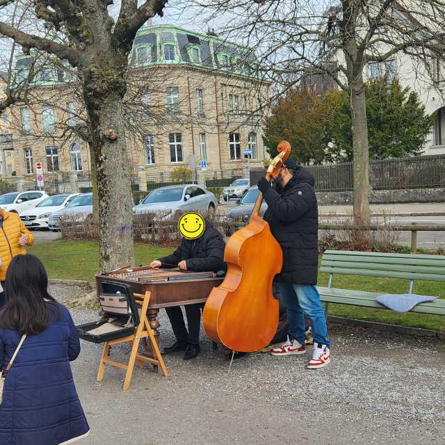 잠시나마 연주를 들으며 산책합니다. 이후 우리 가족은 자리를 옮겨 뮌스터다리 근처로 갑니다. 아이들의 바람이었던 트램을 타러 말이죠.