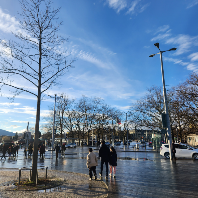 놀이터에서 맘껏 놀고 다시 트램을 타고 취리히 오페라하우스 광장으로 이동합니다. 이동하는 도중 갑작스럽게 소나기가 내립니다. 내릴 때쯤 되어 비가 다행히 그쳤습니다.