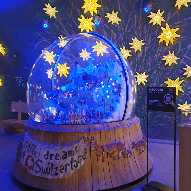 커다란 스노우볼을 지나가면 융프라우의 역사와 산악 철길을 만들었던 분들의 이야기를 간접적으로 볼 수 있습니다.
