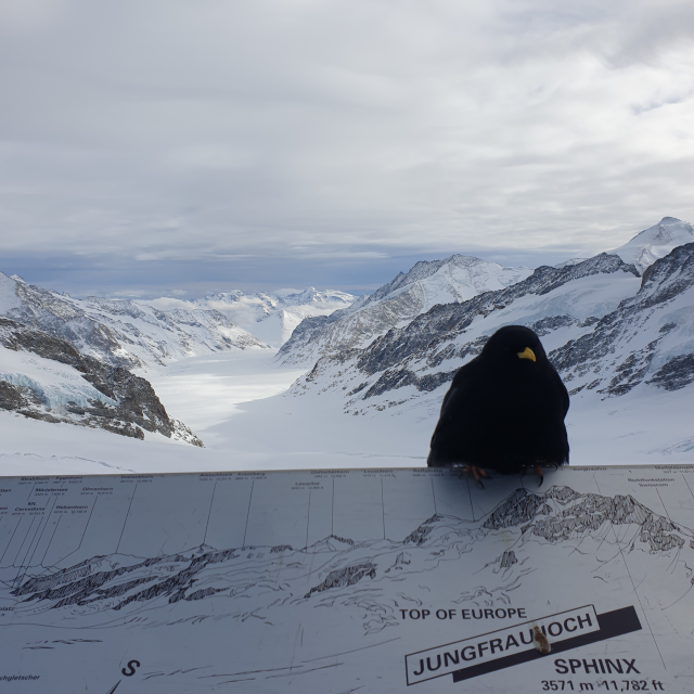 스위스 융프라우에서 까마귀와 함께