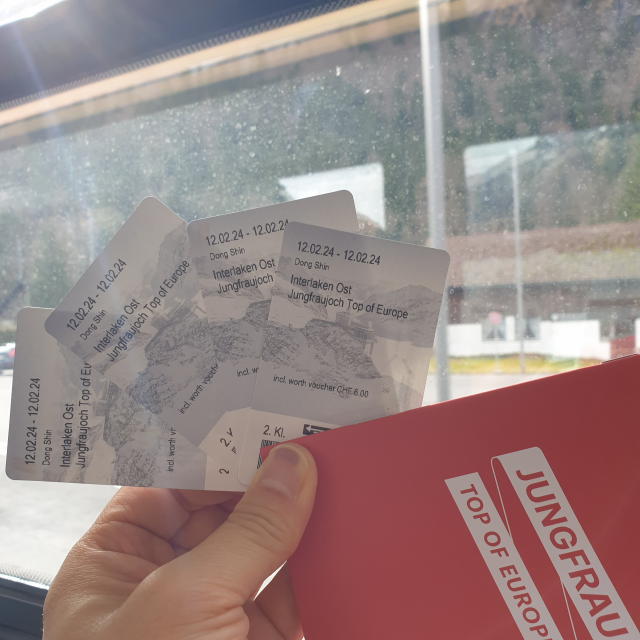 친절한 창구 직원의 도움으로 우리 가족은 할인쿠폰을 인쇄할 필요 없이 스마트폰으로 보여주고 할인쿠폰가격으로 구매했습니다. 그리고 저는 전혀 몰랐는데, 동신항운 쿠폰을 이용한 티켓을 구매하면 융프라우 정상에서 신라면먹을수 있는 바우처가 포함되어 있다고 설명해 주었습니다.