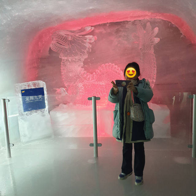 한참을 걸어가던 중 얼음 궁전 끝자락에서 발견한 얼음 용. 이날은 음력으로 설날 연휴 마지막날이었습니다. 올해 용의 해를 멋지게 표현해 놓았습니다. 다만, 한글이 없어서 조금 아쉽긴 했습니다.