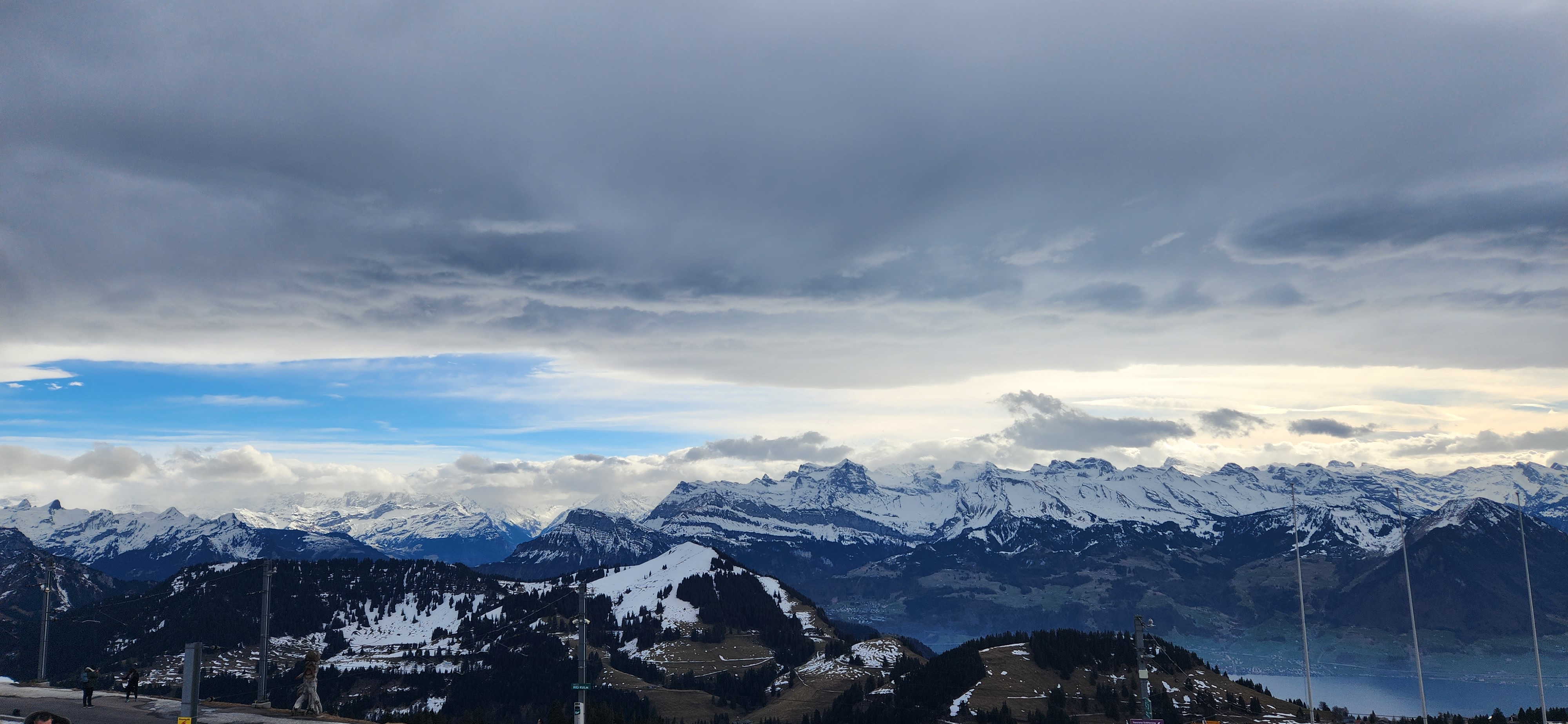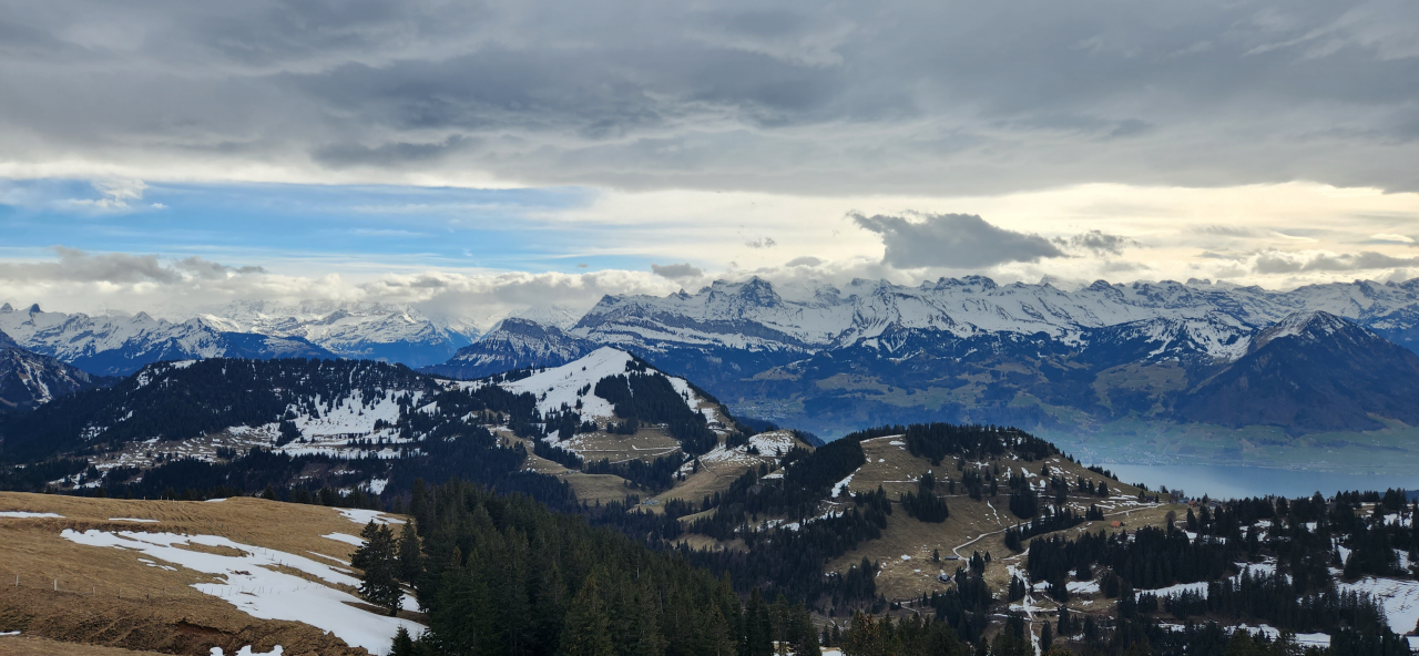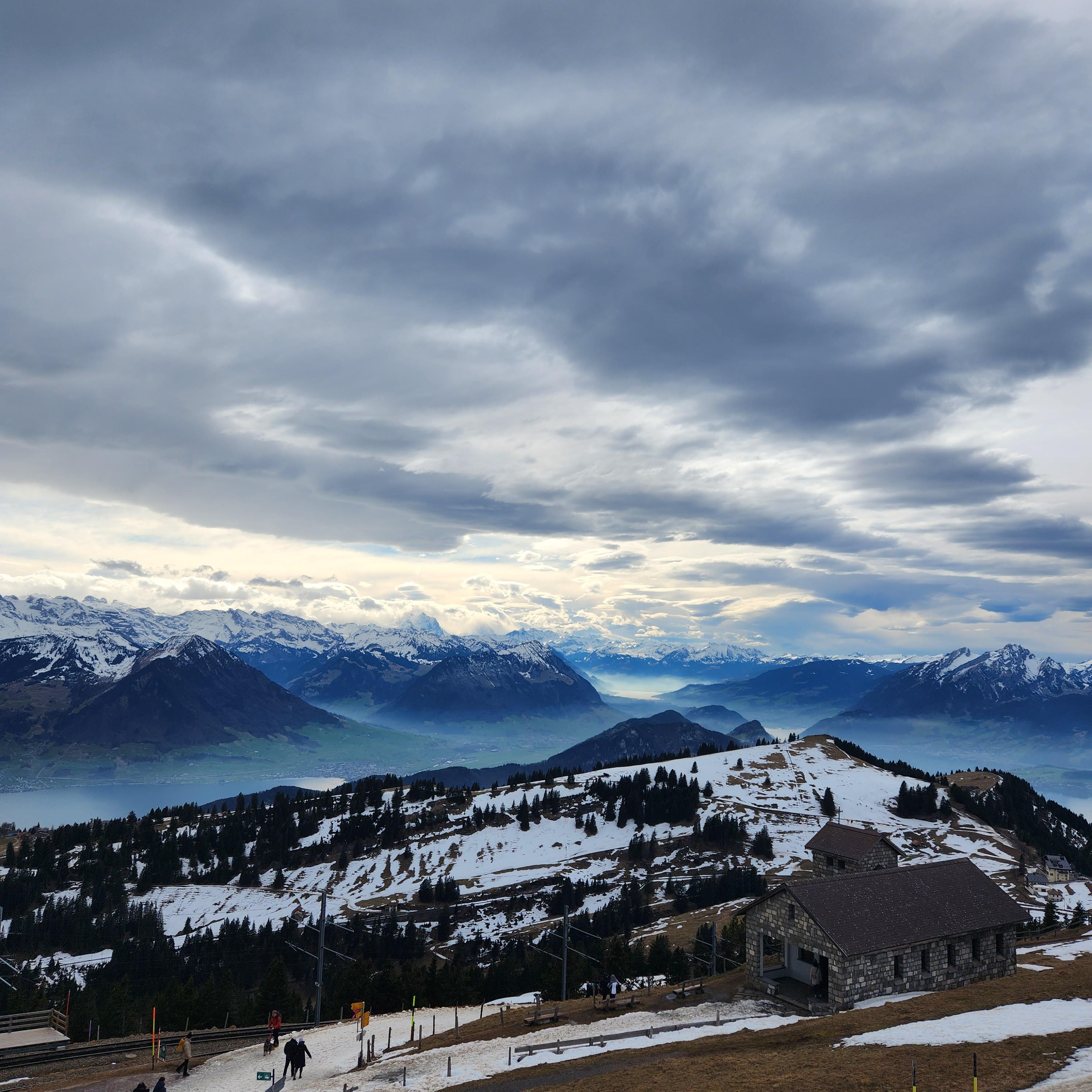 2월의 스위스 리기산 정상은 바람이 정말 많이 불었습니다. 멋진 풍경을 제공하면서도 158 CHF의 값어치를 하는 그런 풍경이었습니다.
