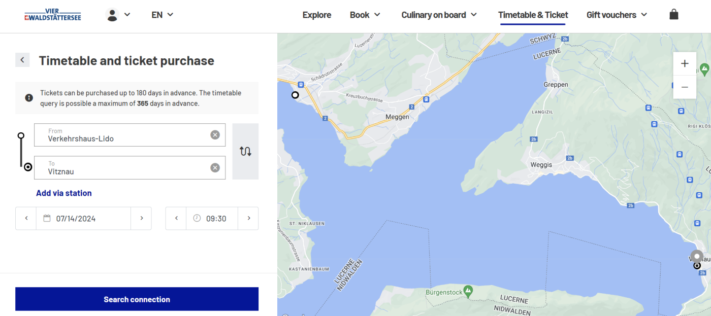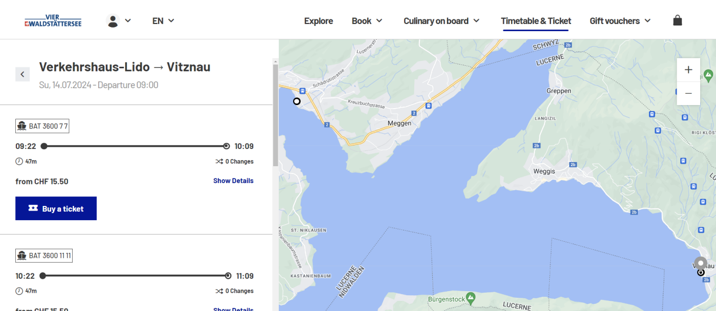 그럼, 여기서 루체른 호수에서 비츠나우 또는 베기스를 이동하기 위한 Ferry를 예약하는 방법을 알아보도록 하겠습니다.