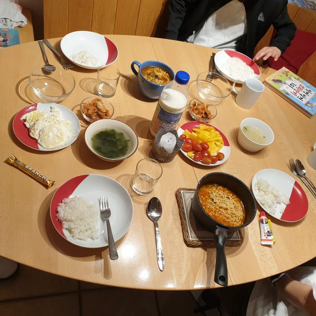 역시 한국사람은 밥심입니다. 오스트리아에서 사 온 한국라면과 야채들 그리고 간단한 미역국을 끓여서 주린 배를 채워줍니다.